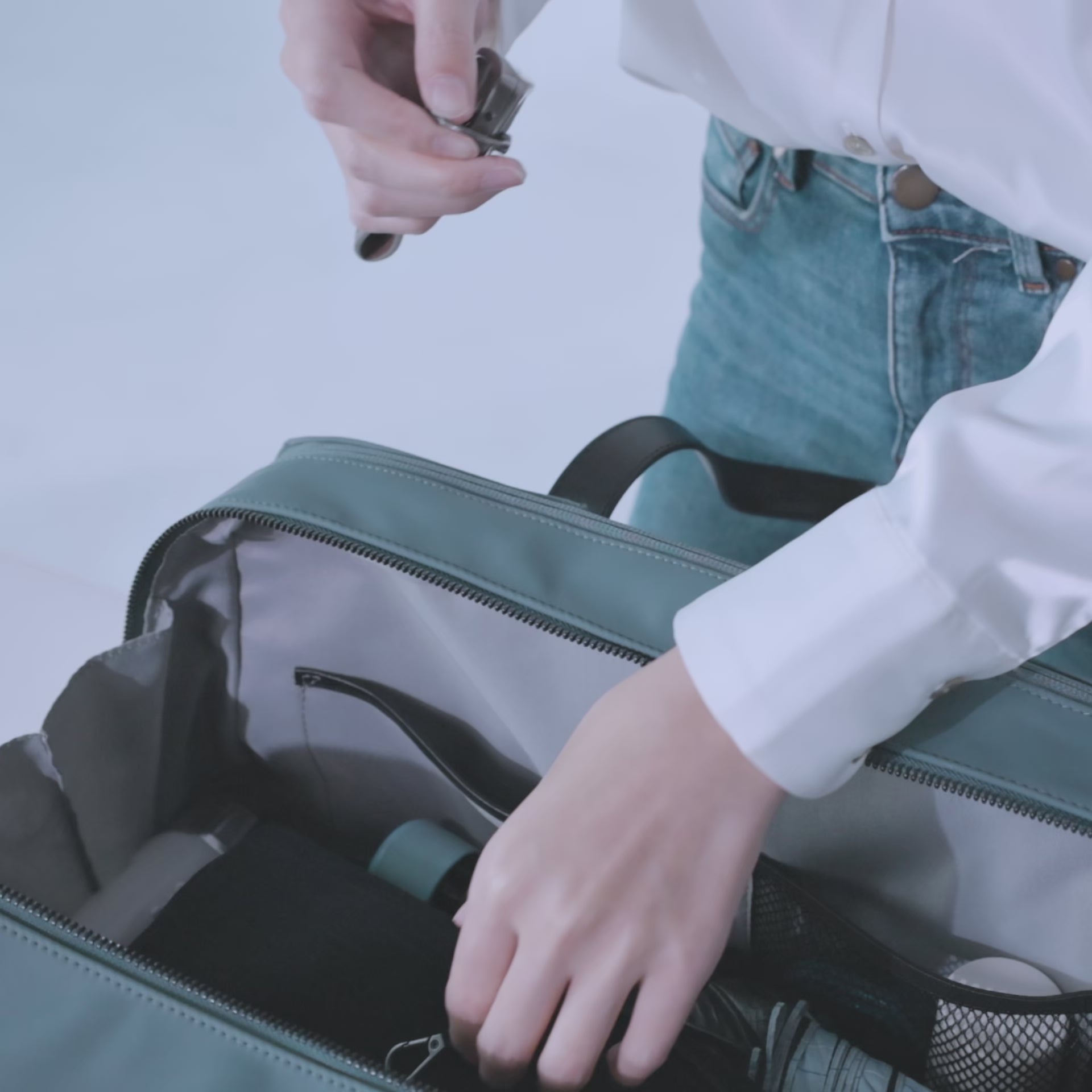 The Loom Nylon Duffel effortlessly transitions from travel to daily grind. Its full wraparound zip access reveals a cavernous main compartment, while a built-in trolley sleeve locks onto Away luggage (optimized for our Carry-On). Swap between padded top handles and a detachable shoulder strap with hidden D-rings. Bonus perks: a 16" laptop slot and removable key leash. Sleek enough for the office, tough enough for the gym – all in one grab-and-go silhouette.